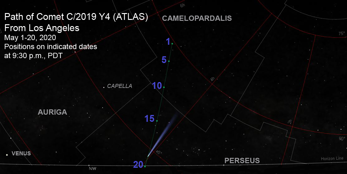 A new comet, C/2019 Y4 (ATLAS), is falling into the inner solar system. Early predictions suggested it would be bright enough to be a naked eye comet, and maybe even a daytime comet. Recently, however, the comet appears to be breaking up, so early expectations are unlikely to be met.