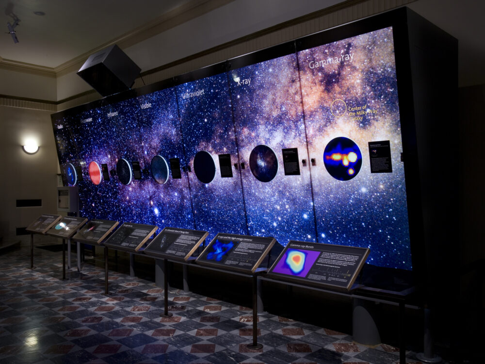 The Wilder Hall of the Eye illustrates the nature and progress of human observation of the sky and the tools used for that exploration. This exhibit gallery focuses on how people have observed the sky and the often profound impact those observations have had on people and society. Each of the four Wilder Hall of the Eye exhibit areas charts the key developments that have further evolved our ability to help our eyes see farther, fainter, and beyond.