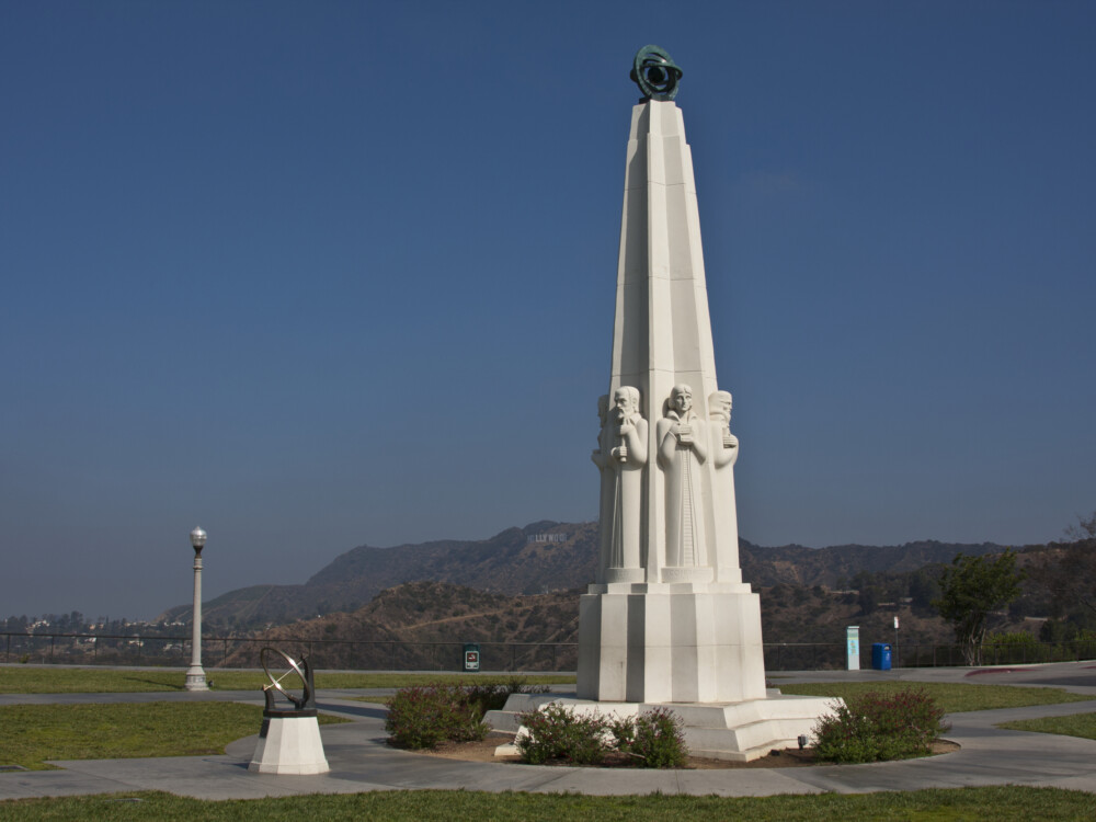 The grounds of the Observatory present compelling opportunities to observe the movement of the Sun and Moon and to walk a scale model of the solar system. Looming over the lawn is a monumental sculpture celebrating astronomers who gradually revealed the nature of the universe. The terraces offer vistas of Los Angeles, Griffith Park, Mt. Wilson, the Pacific Ocean, and, of course, the famous Hollywood Sign.